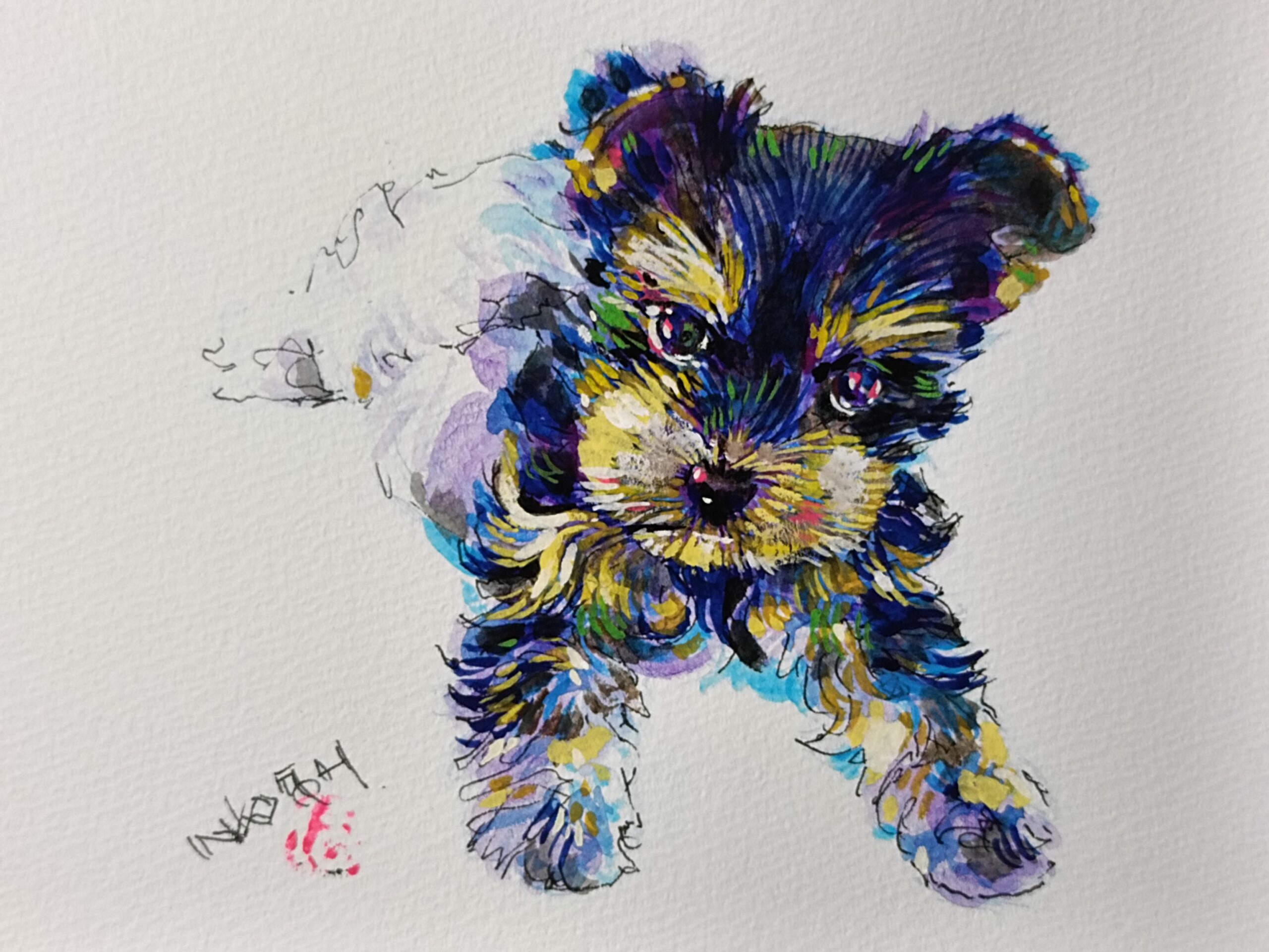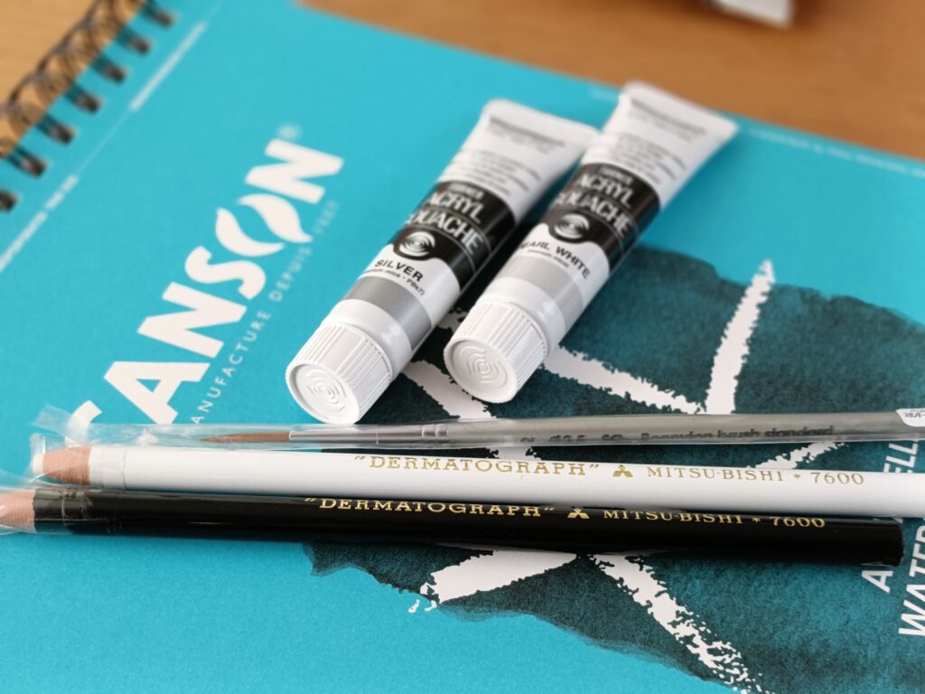 使用している紙は、水彩紙(WATSON300mg 他各種)を使用 絵の具はミクストメディア(mixed media) ガッシュ他です。