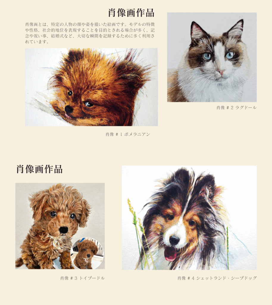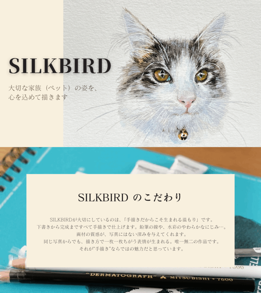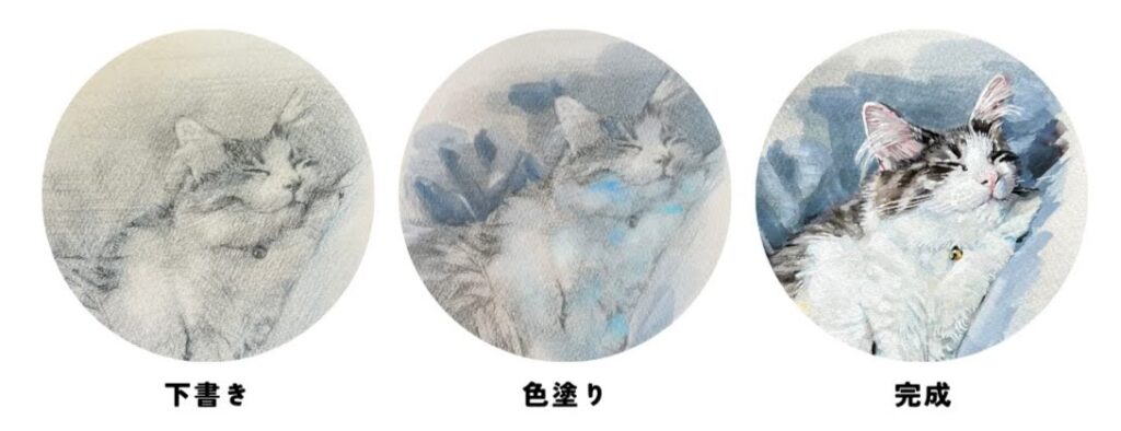 ご依頼者様の大事な家族の話を聞いてから、一枚の作品を“アート”として仕上げる気持ちで描いています。